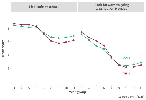 - Girls feel less safe in school compared to 2019: A raft of recent research shows that girls’ sense of safety in school has declined considerably since the pandemic. Between 2019 and 2023, girls’ sense of safety in school in England fell by 22 per cent — more than double the 10 per cent drop among boys, and one of the steepest declines internationally.